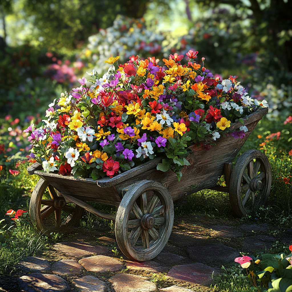 1. Flower Bed with Wheelbarrow Planter