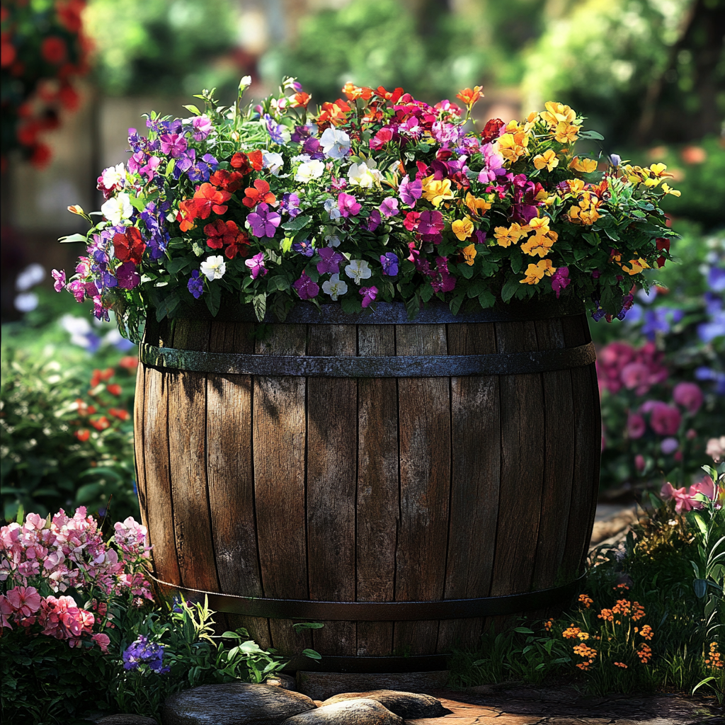 8. Barrel Flower Bed